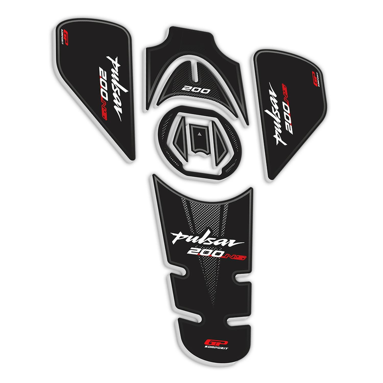 GP Kompozit Tank Pad Set Black-Red Compatible For Bajaj Pulsar NS200 2011-2023