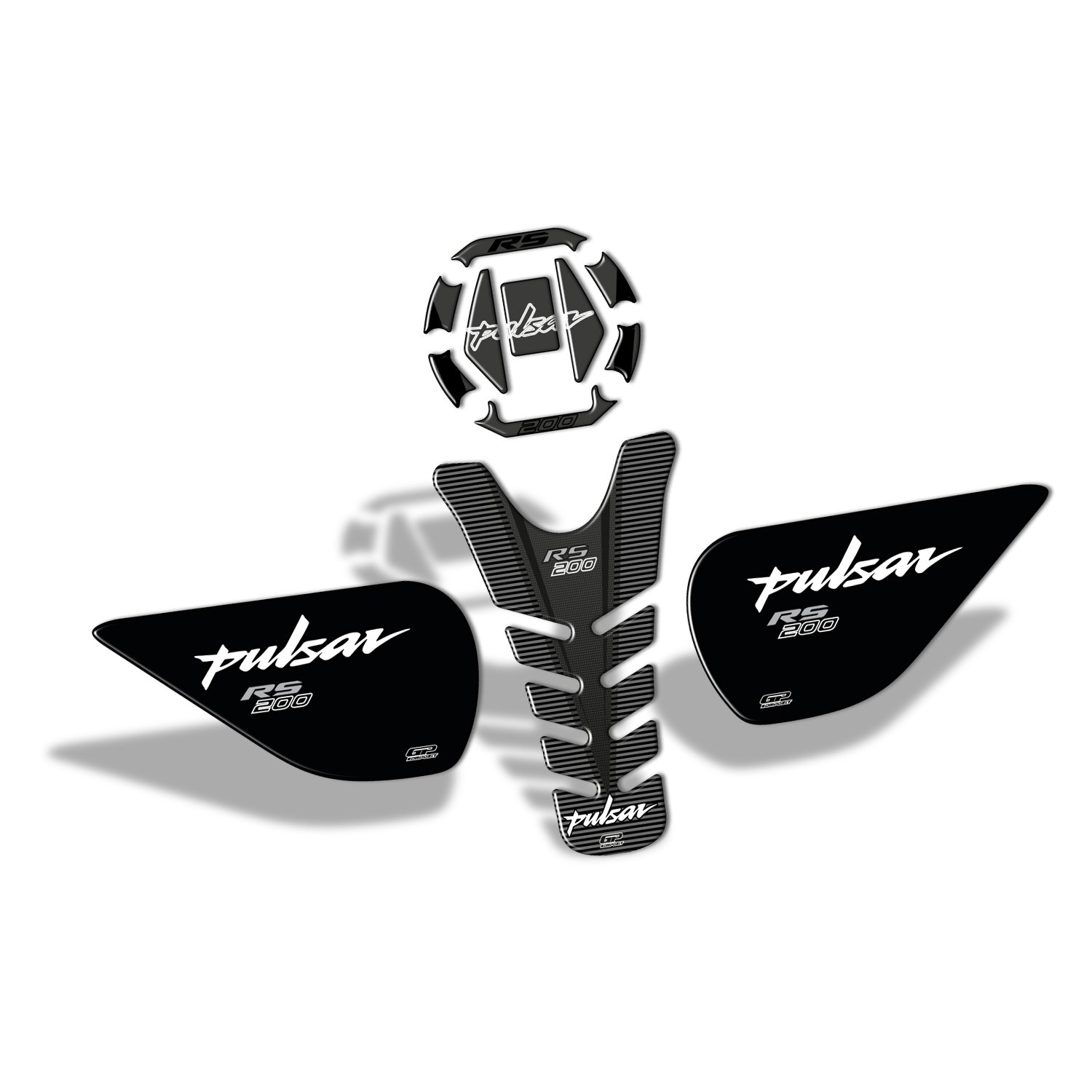 GP Kompozit Tank Pad Set Black Compatible For Bajaj Pulsar RS200 2015-2020