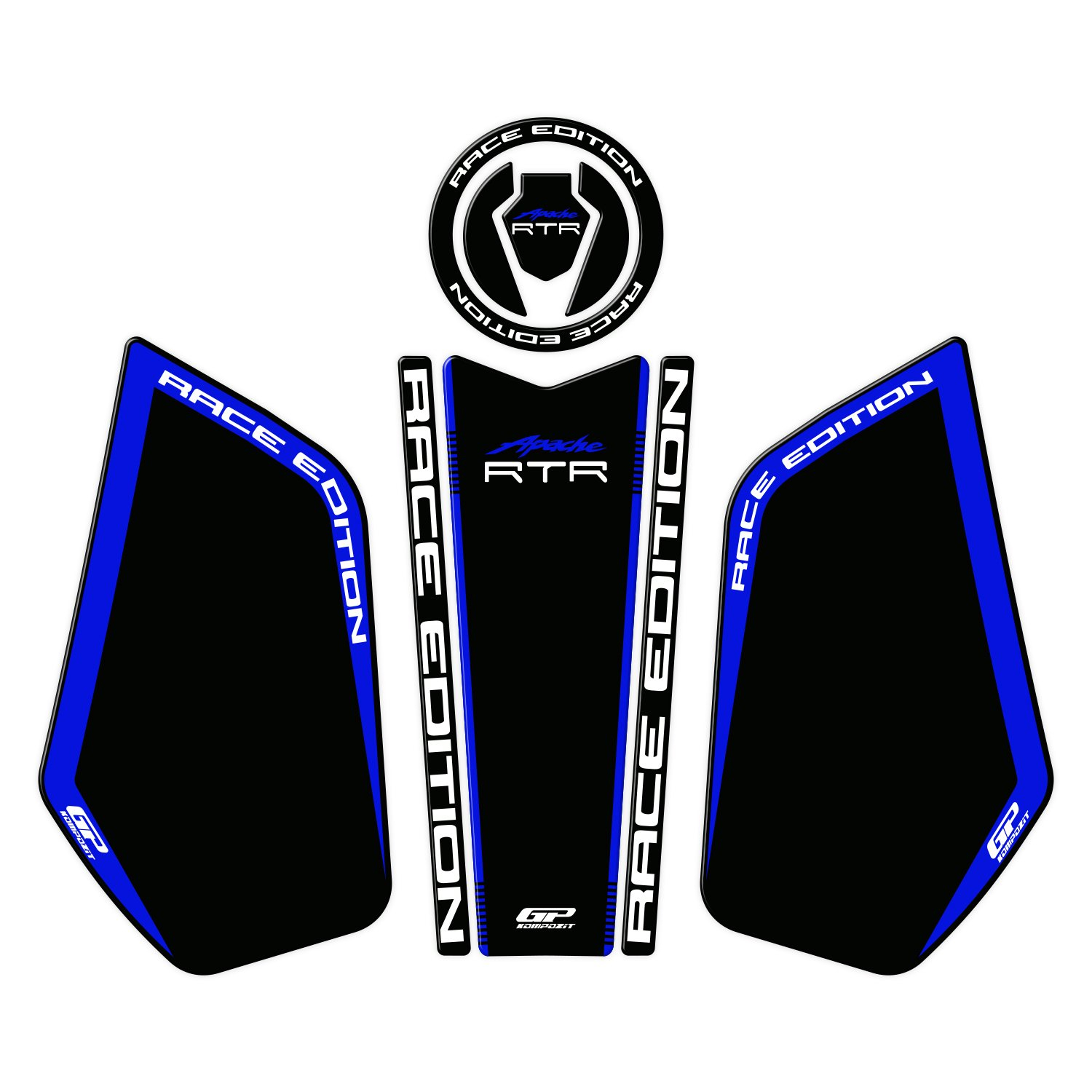 GP Kompozit Tank Pad Black-Blue Compatible For TVS Apache RTR 200 2024