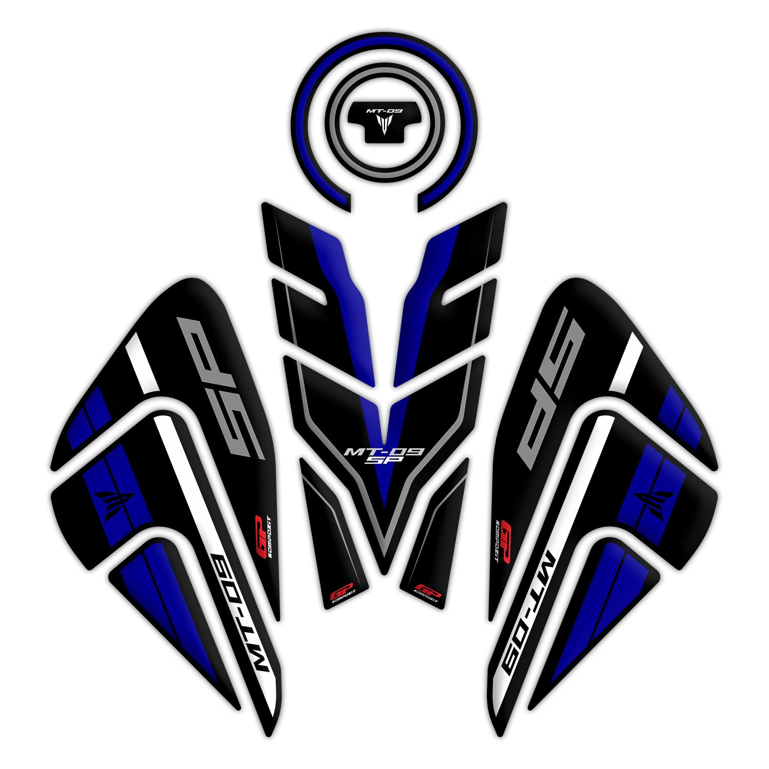 GP Kompozit Tank Pad Set Black-Blue Compatible For Yamaha MT-09 SP 2021-2023
