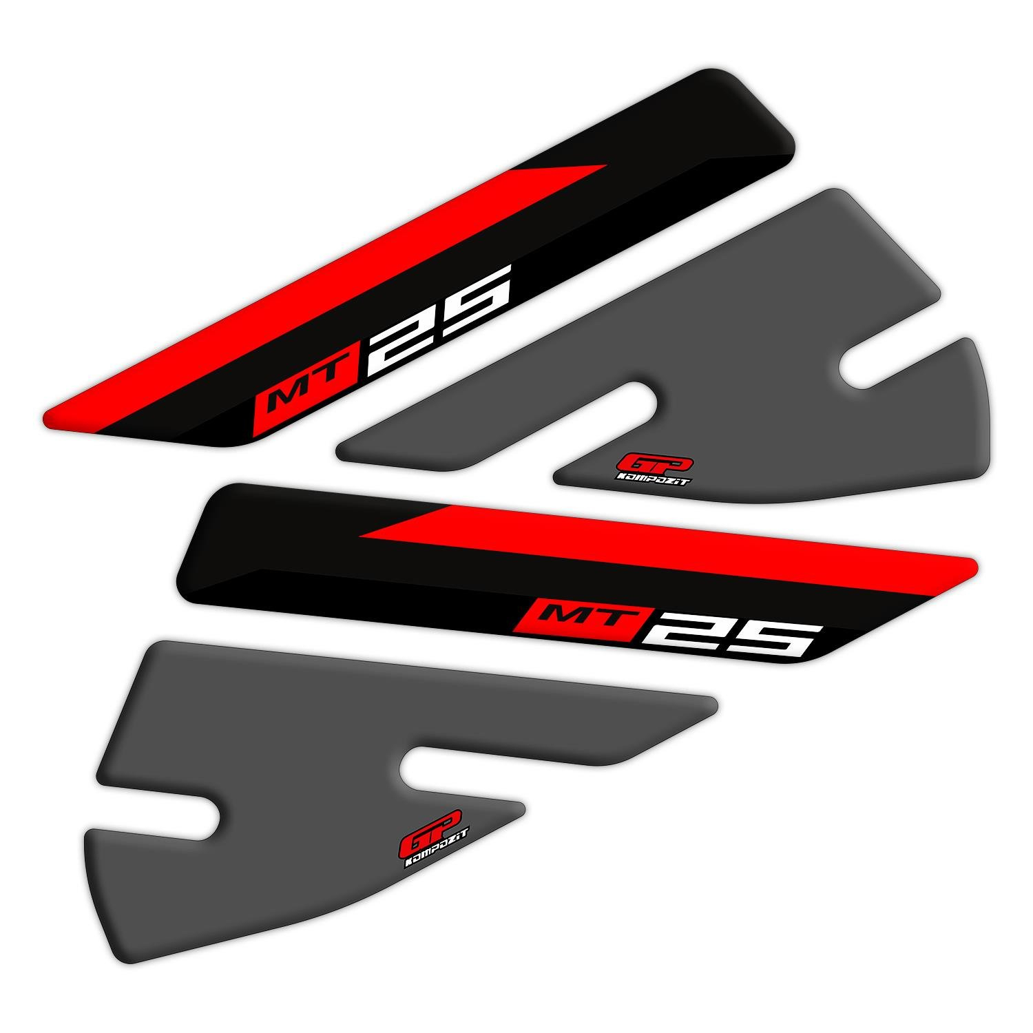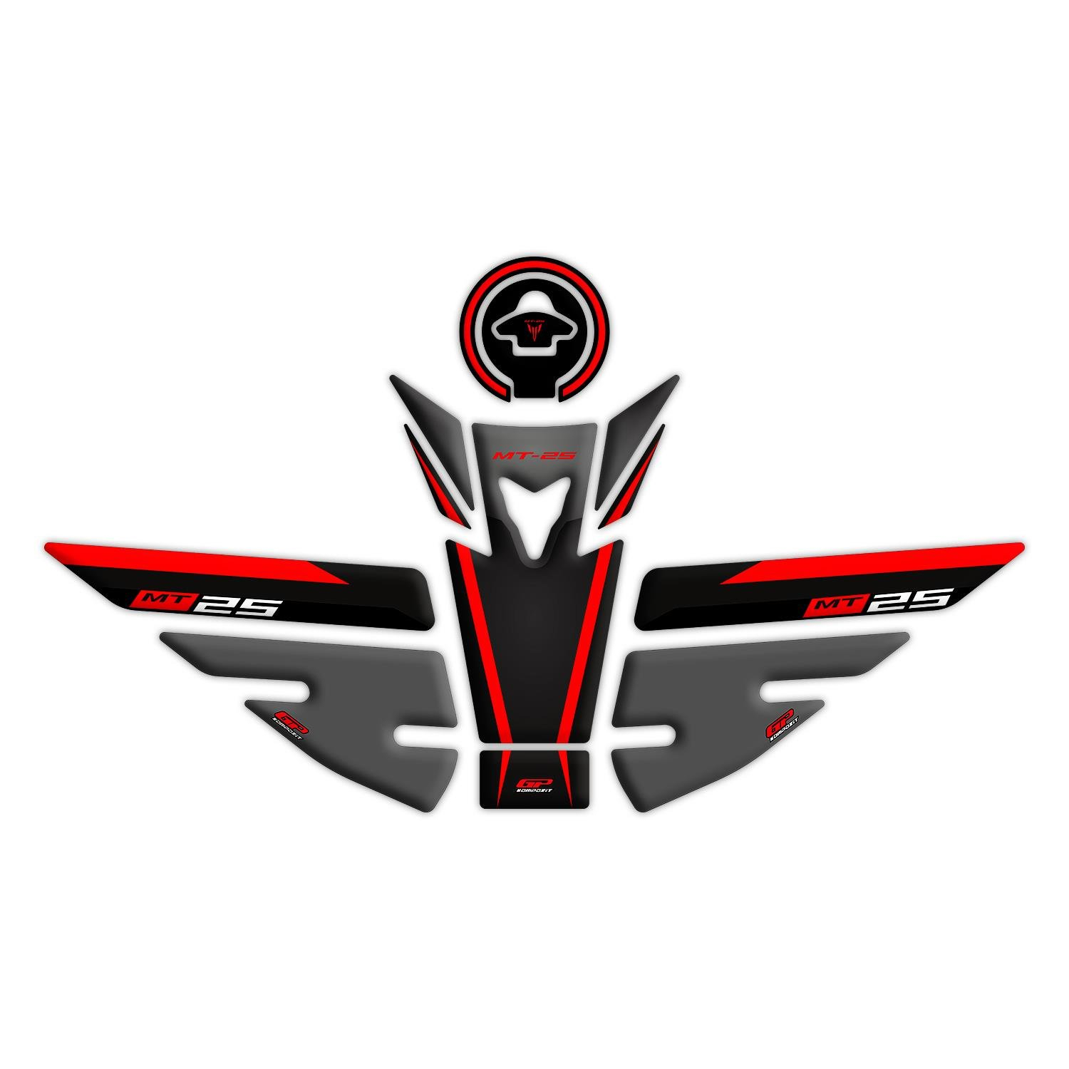 GP Kompozit Tank Pad Set Black-Red Compatible For Yamaha MT-25 2015-2019